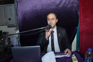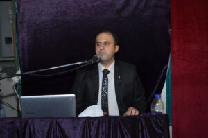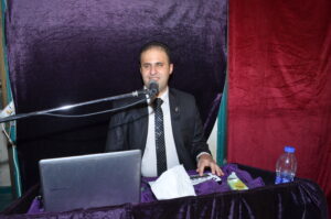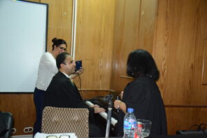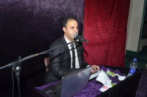 صورة رامي مصطفي اثناء مناقشة رسالة الدكتوراة