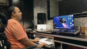 صورة رامي مصطفي اثناء استخدام برنامج Pro tools studio