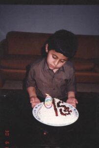 صورة لرامي مصطفي وهو يحتفل بعيد ميلاده في سن 3 سنوات