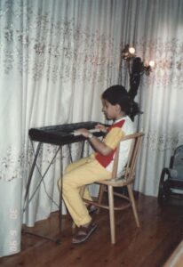فعندما أتم ٤ سنين، وإلتحق بالروضة، إشترى له والده أورغ ٤ أوكتاف، وكان هذا الجهاز بمثابة الأخ والصديق له الذي لا يفارقه إلا عند النوم، فأيقن الوالدان أن إبنهما لديه موهبة خاصة.
